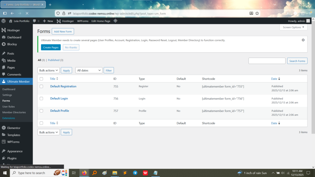 Form-to-Page Integration: I understood the workflow of using forms (created in the backend) and embedding them into designated pages (Login, Registration) using shortcodes, which is a core feature of WordPress development.