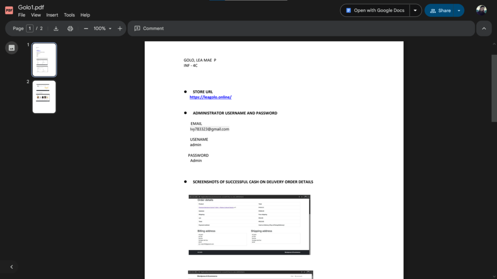 • Payment Gateway Integration: The exercise confirmed the setup and testing of a payment method (Cash on Delivery), which is a key component of any online store.